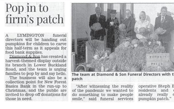 The team from Diamond & Son in Lymington created a harvest themed display outside the branch and invite local families to visit for sweets and a pumpkin.